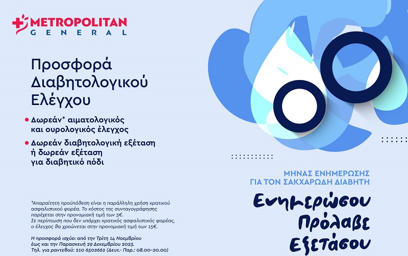 Metropolitan General: Προσφορά Διαβητολογικού Ελέγχου με αφορμή την Παγκόσμια Ημέρα Διαβήτη