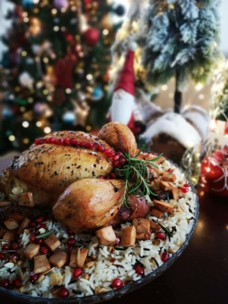 Χριστουγεννιάτικο Κοτόπουλο από τα Αγροκτήματα Κρήτης με γιορτινό ρύζι από την Εύα Παρακεντάκη