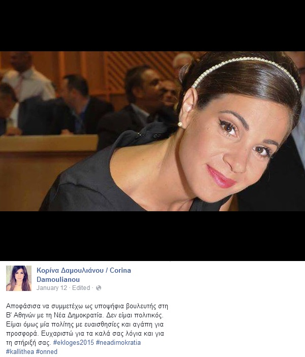 Δείτε το μήνυμα που ανέβασε η ίδια μερικές ημέρες πριν στη σελίδα της στο facebook, για την υποψηφιότητά της…