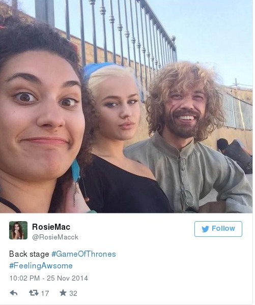 Η ίδια πάντως στο προφίλ της στο Instagram και το Twitter δηλώνει «Official Daenerys double» και ποστάρει ασταμάτητα φωτογραφίες από τα γυρίσματα της 5ης σεζόν.