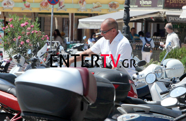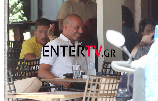 Φορώντας τζιν παντελόνι, λευκό πουκάμισο, και γυαλιά ηλίου, ο Γιάννης Βαρουφάκης απαθανατίστηκε να πίνει τον καφέ του σε καφετέρια της περιοχής και μετά αποχώρησε καβαλώντας τη μεγάλη κυβισμού μηχανή του.