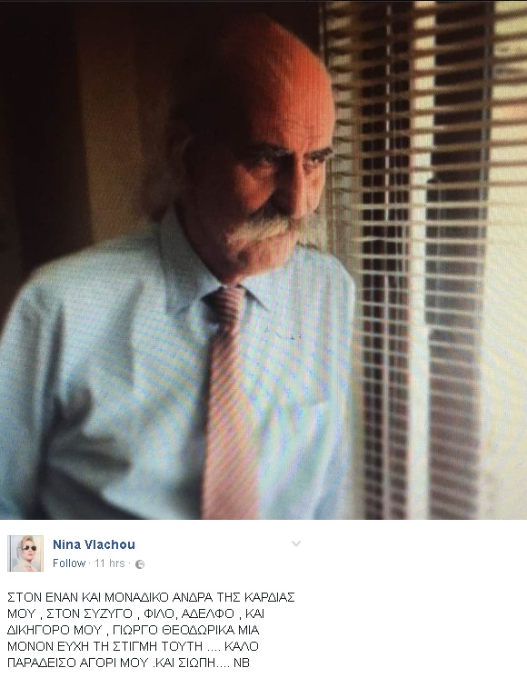 Δύσκολες στιγμές ζει η Νίνα Βλάχου μετά την απώλεια του συζύγου της, Γιώργου Θεοδωρίκα.