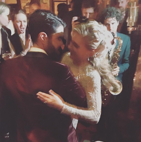 Η νύφη έκλεψε τις εντυπώσεις, βγάζοντας το νυφικό της και επιλέγοντας μία ιδιαίτερη ολόσωμη φόρμα, ενώ οι φίλοι του ζευγαριού ανέβασαν φωτογραφίες από το λαμπερό γαμήλιο πάρτι στα social media.