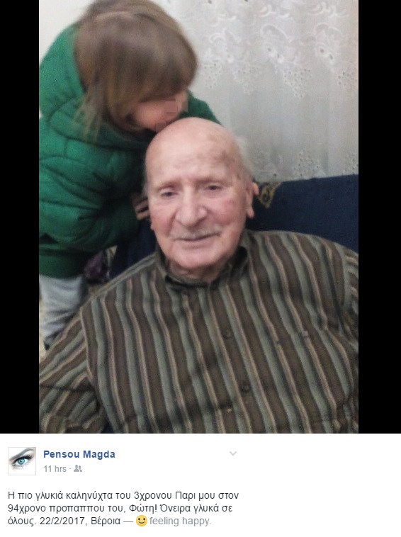 Απαθανάτισε τον μικρότερο γιο της, Πάρι, να φιλά τρυφερά τον 94χρονο προπάππου του, Φώτη, στην ιδιαίτερη πατρίδα της, τη Βέροια.