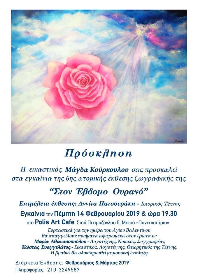 Την 6η της ατομική έκθεση ζωγραφικής  με τίτλο “Στον Έβδομο Ουρανό” διοργανώνει η γνωστή εικαστικός Μάγδα Κούρκουλου.