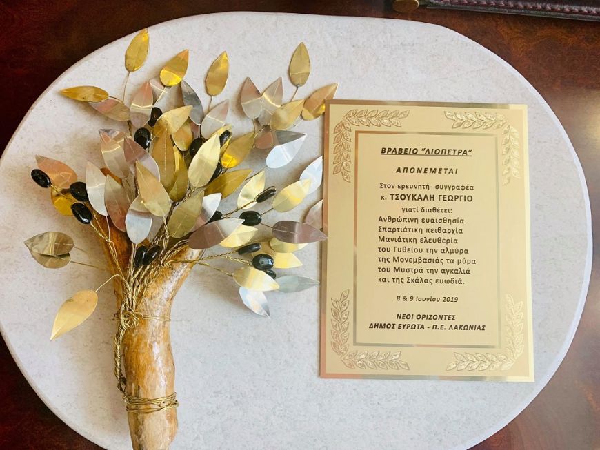 «Ευχαριστώ το σύλλογο Νέοι Ορίζοντες για τη βράβευση της ταπεινότητος μου με το βραβείο Λιόπετρα. Συνεχίζω τον αγώνα ενάντια στην αρχαιοκαπηλία αισθανόμενος ότι ο πήχης καθημερινά ψηλώνει»