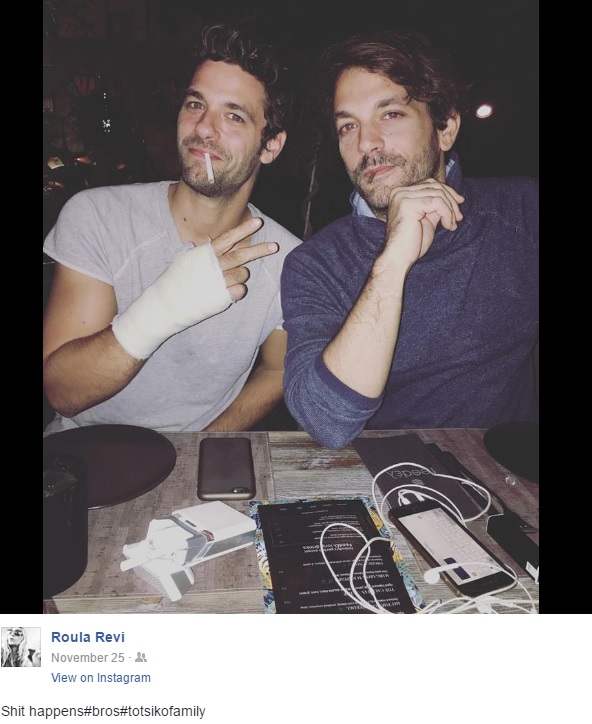 Ο Θανάσης Τότσικας είναι σκηνοθέτης και όπως βλέπουμε μοιάζουν πολύ με τον γοητευτικό ηθοποιό, ο οποίος είχε πρόσφατα ένα ατύχημα στο χέρι του, που είναι δεμένο με επίδεσμο.