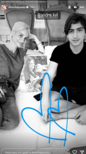 Στα Instagram stories της, η Σοφία Καρβέλα έγραψε στα αγγλικά: «Ο μικρός μου αδερφός» και ζωγράφισε καρδιές.