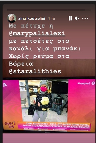 Παρολαύτα η Ζήνα διατηρεί την καλή της διάθεση και σε ερώτηση της Σταματίνας Τσιμτσιλή για το πως πέρασε το βράδυ της Τρίτης, απάντησε γελώντας πως απλά δεν είχαν και πολλές επιλογές μιας και το σπίτι τους δεν είχε ρεύμα.