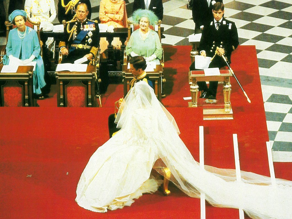 Για το γάμο της, που έγινε μόλις πέντε μήνες μετά την ανακοίνωση του αρραβώνα του ζευγαριού, η Νταϊάνα φόρεσε ένα μεταξωτό παραμυθένιο φόρεμα από ταφτά που εκτιμάται ότι κόστισε 103.300 ευρώ.