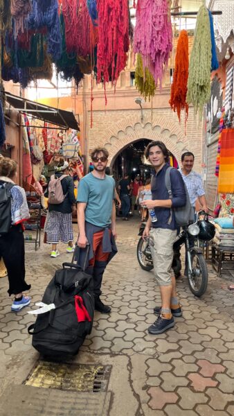 Με ένα τουκ τουκ, ένα τρίκυκλο με σκεπαστή καρότσα σαν από άλλη δεκαετία, με ντόπιο οδηγό, η ομάδα μεταφέρθηκε, σε μια περιπετειώδη μετακίνηση, στην καρδιά της Μεντίνα. Πάνω στο όχημα 7 άτομα και σακ βουαγιάζ με τα ρούχα των ηθοποιών, μεταφέρθηκαν στο χώρο του γυρίσματος. Σε στενά δρομάκια πλάτους 2,5 μέτρων, με τα μαγαζιά δεξιά κι αριστερά να απλώνουν την πραμάτεια τους, με κόσμο, με ποδήλατα, μηχανάκια, ανθρώπους που έσερναν καρότσια, να έρχονται από την αντίθετη μεριά, κάθε δευτερόλεπτο ήταν μια περιπέτεια, σαν σε ταινία του Τζέιμς Μποντ.
