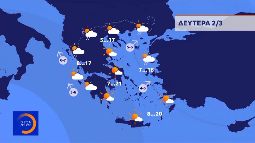Αναλυτικά η πρόγνωση του καιρού από τον μετεωρολόγο Κλέαρχο Μαρουσάκη.