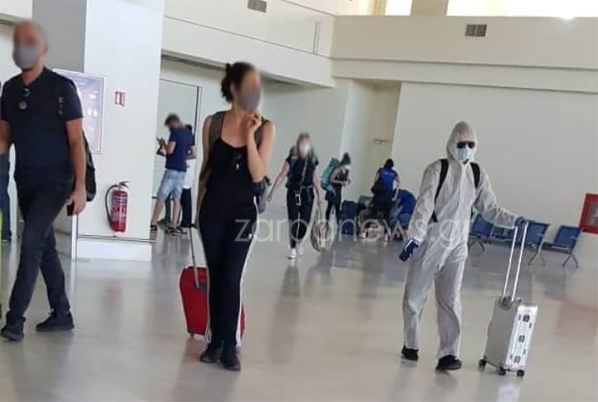 Στη φωτογραφία φαινόταν άτομο που φορούσε ολόσωμη στολή, γάντια, γυαλιά ηλίου και μάσκα για να προστατευτεί από τον κορoνοϊό.