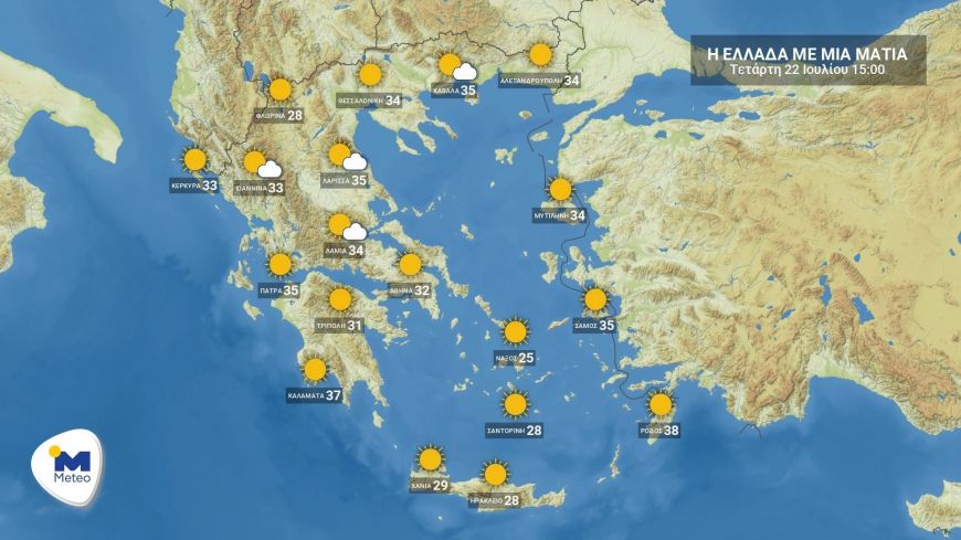 Ηλιοφάνεια και ζέστη αναμένεται την Τετάρτη 22 Ιουλίου 2020.