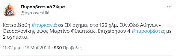 500 μέτρα πριν τη διασταύρωση με το Μαρτίνο στο ρεύμα προς Λαμία, το ΙΧ το οποίο οδηγούσε, άρχισε να βγάζει καπνούς και μέσα σε λίγα λεπτά τυλίχτηκε στις φλόγες και καταστράφηκε ολοσχερώς.