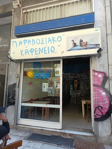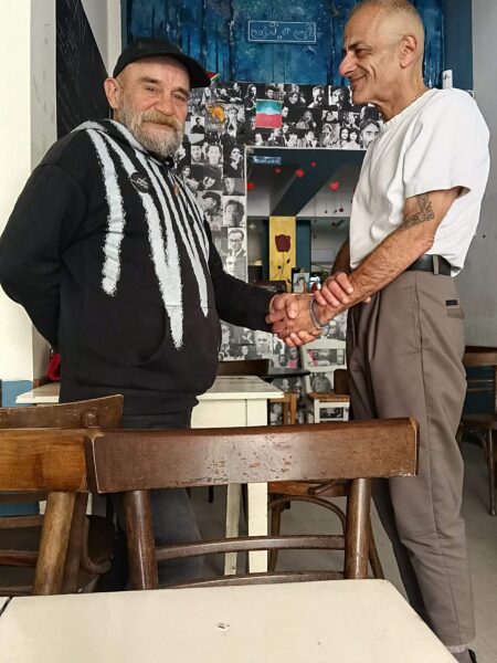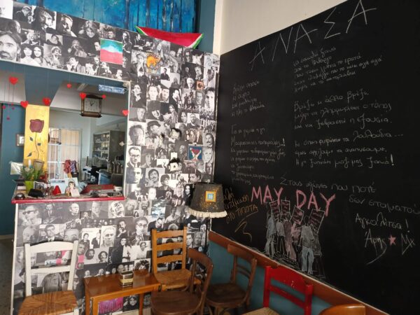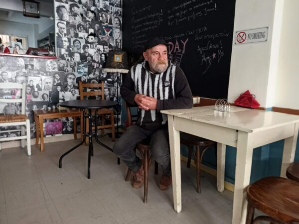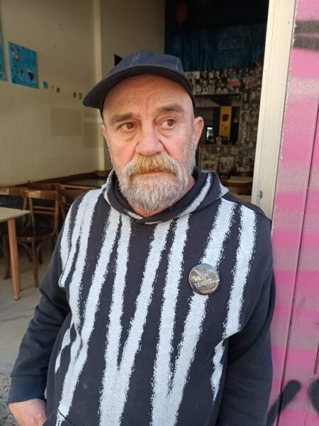 Ήθελα με κάτι να ασχοληθώ ήθελα να συνεχίσω να ζω. Μου παραχωρήθηκε ένας χώρος, αυτο το καφενεδάκι που έχεις έρθει και αποφάσισα να ρίξω όλη μου την αγάπη και το μεράκι να το φτιάξω από την αρχή. Μου λείπει πολύ η διαδικασία της κοινωνικής κουζίνας όμως ακόμη και σε αυτό το καφενείο κάτι μαγειρεύω και βέβαια προσπαθώ να είναι χαμηλές οι τιμές γιατί θέλω να απευθύνομαι σε ανθρώπους που δυσκολεύονται οικονομικά και θέλουν ένα πιάτο φαγητό. Μεζέδες, κρασάκι και με έναν μαγικό τρόπο το μαγαζάκι αυτό άνθισε το τελευταίο διάστημα με ανθρώπους που γίνανε νέοι φίλοι μου η με ήξεραν από παλιά και συνεχίζουν να πιστεύουν σε μένα και να με στηρίζουν. Είναι συγκινητική η όλη διαδικασία, μου αρέσει πολύ βρίσκομαι με κόσμο καθημερινά και νιώθω ότι εδώ στο κέντρο της Αθήνας ένας μικρός χώρος αγάπης στήθηκε ξανά με ένα διαφοροποιημένο πρόσημο όμως πάντα με γνώμονα την αγάπη.