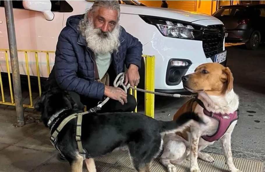 Ο Χρήστος είναι πλέον γνώριμη μορφή στους δρόμους του Ηρακλείου και ιδιαίτερα του κέντρου. Άστεγος, δεν θα τον δείτε ποτέ να κυκλοφορεί χωρίς την «Μαρία» και τον «Ιησού», τα δύο σκυλιά του, τα οποία υπεραγαπάει.