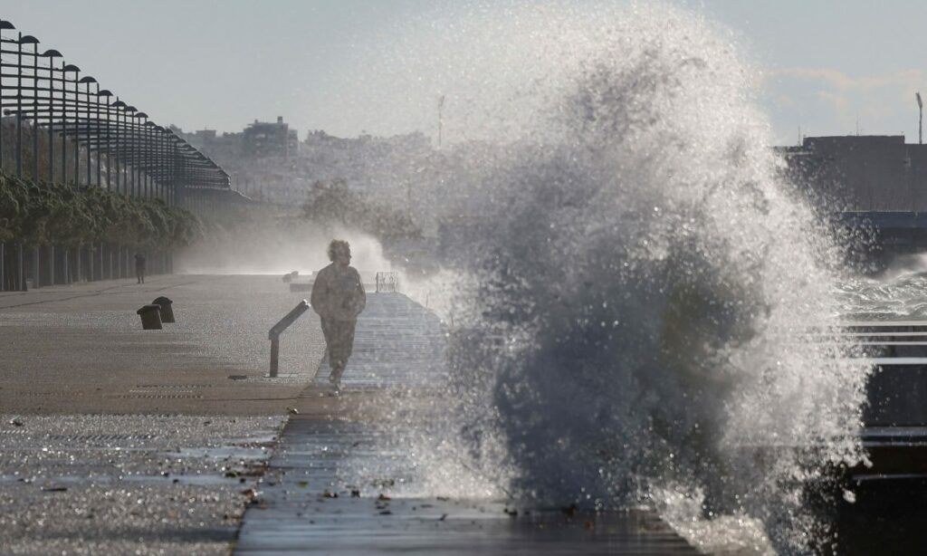 Η θάλασσα είναι «ταραγμένη» λόγω της υψηλής έντασης των ανέμων, με τα κύματα σε ορισμένα σημεία να βγαίνουν στη στεριά.