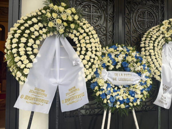 Πλήθος κόσμου έχει στείλει στεφάνι στην κηδεία, ανάμεσά τους και ο πρωθυπουργός Κυριάκος Μητσοτάκης.