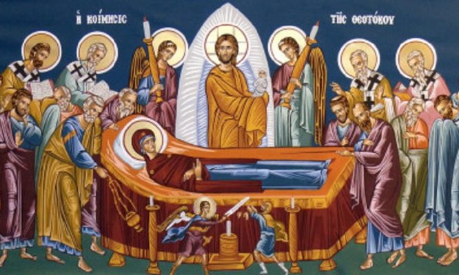Η εορτή της Κοιμήσεως της Θεοτόκου και η συνάθροιση των Αποστόλων είναι μία ευκαιρία να σπουδάσουμε ποια πραγματικά είναι η Παναγία της Εκκλησίας για την ανθρωπότητα και να παλέψουμε ο προσανατολισμός μας να πάψει να είναι περιορισμένος στα όρια της φύσης, στα όρια της κλειστότητας, στα όρια του «δικού μας». Να γίνει δηλαδή άνοιγμα στην Εκκλησία και στον τρόπο της. Αγάπη ανοιχτή που ζητά πάντας σωθήναι.
