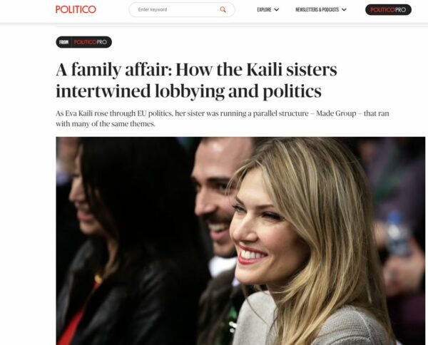 Qatar Gate: Καθώς η Εύα Καϊλή ανέβαινε στην πολιτική ιεραρχία της ΕΕ, η αδερφή της διοικούσε μια Μη Κερδοσκοπική εταιρία που «έτρεχε» παρόμοια θέματα, αναφέρει το Politico σε θέμα με τίτλο «οικογενειακή υπόθεση»
