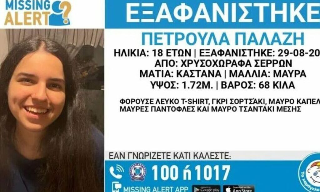Η 18χρονη εξαφανίστηκε την περασμένη Τρίτη από τις Σέρρες όπου βρισκόταν με τους γονείς και τον αδελφό της, έχοντας πάρει μαζί της την ταυτότητα, το πορτοφόλι και το κινητό της, το οποίο μέχρι σήμερα παραμένει κλειστό. Η Πετρούλα εξαφανίστηκε από τις Σέρρες την περασμένη Τρίτη.