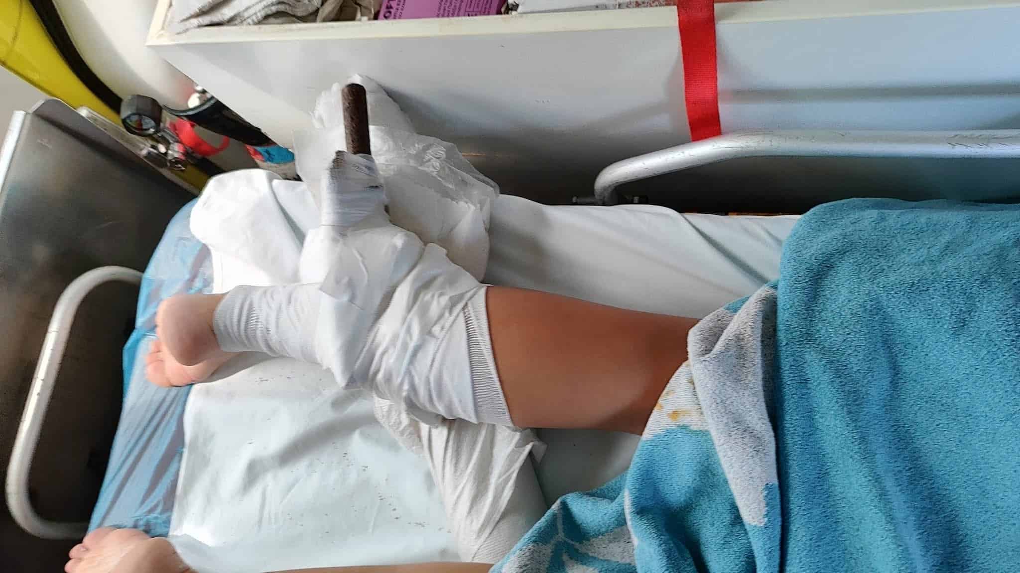 Λίγο αργότερα, έφτασε ασθενοφόρο, του οποίου το πλήρωμα προχώρησε στην ακινητοποίηση του τραυματισμένου ποδιού και στην επίδεση για τον έλεγχο της αιμορραγίας. Η 26χρονη διακομίστηκε με ασθενοφόρο του ΕΚΑΒ στο Νοσοκομείο Πολυγύρου, όπου θα υποβληθεί στις απαραίτητες εξετάσεις και θα αφαιρεθεί το ξένο σώμα, σύμφωνα με τα πρωτόκολλα που τηρούνται σε τέτοιες περιπτώσεις.