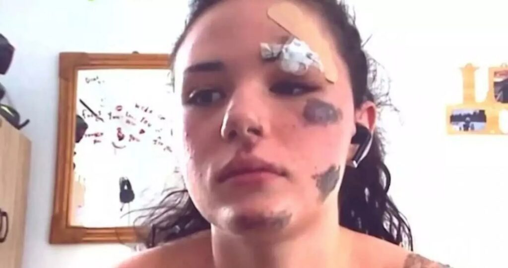 Με τραύματα στο πρόσωπο και φορώντας το κολάρο, η κοπέλα περιγράφει λεπτό προς λεπτό την στιγμή της πτώσης, με την εικόνα της και την περιγραφή της να καθηλώνει.