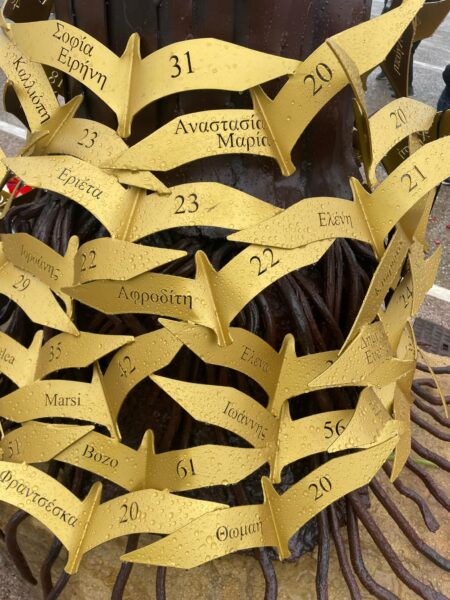 Στο «Δέντρο της Μνήμης» τα πουλιά βρίσκονται στις ρίζες του, ενώ στο αντίστοιχο μνημείο της Αθήνας τα πουλιά βρίσκονται στα κλαδιά του δέντρου