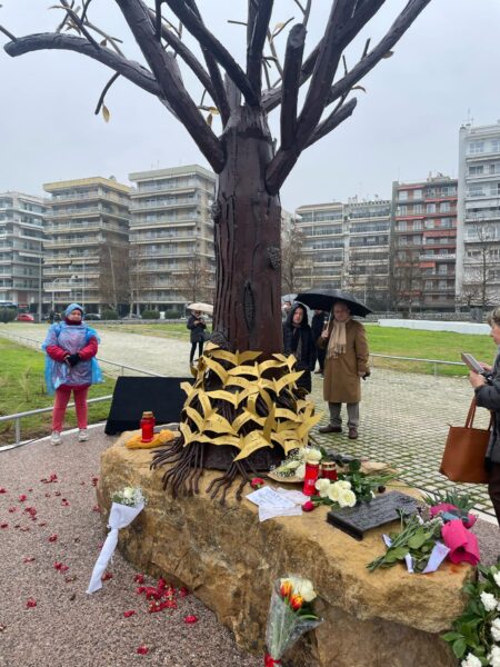 Μετά το «Δέντρο των Ψυχών», που αποκαλύφθηκε χθες Σάββατο στους Αθηναίους, σε αντίστοιχο κλίμα συγκίνησης πραγματοποιήθηκαν σήμερα το μεσημέρι σε χώρο πρασίνου στη Νέα Παραλία της Θεσσαλονίκης τα αποκαλυπτήρια του γλυπτού με τίτλο «Το δέντρο της Μνήμης», που είναι επίσης αφιερωμένο στα 57 θύματα των Τεμπών.