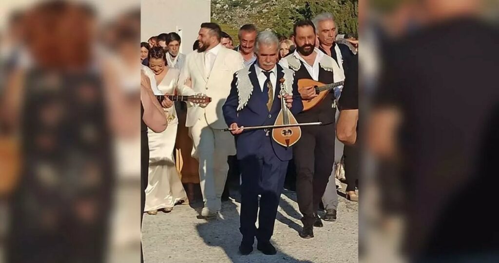 Ο υπερήφανος και τρυφερός πατέρας ήταν εκείνος που με τη λύρα του και τη μαγική φωνή του συνόδευσε το ζευγάρι μέχρι την εκκλησία του Αγίου Κωνσταντίνου και Ελένης, και Οσίου Αλκιβιάδη, παρουσία πλήθους κόσμου.