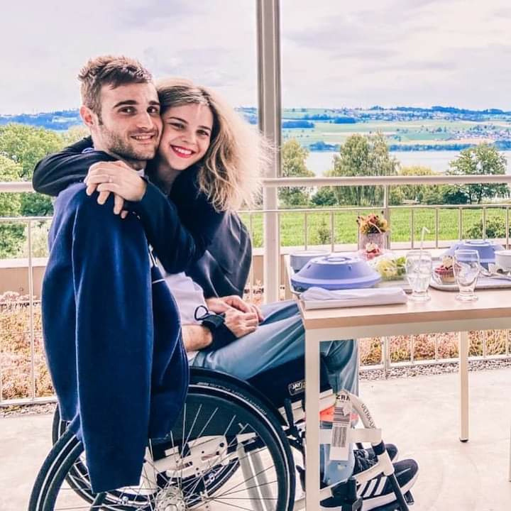 Ανθή: Στην Ελβετία κάποια στιγμή χωριστήκαμε λόγω κορωνοϊού. Ο Νίκος στο Κέντρο κι εγώ έξω κι αυτό λίγο μας έριξε. Στο Κέντρο Αποκατάστασης των Αθηνών μείναμε στο ίδιο δωμάτιο, ξαναβρήκαμε ο ένας τον άλλο. Αυτό όμως για το οποίο έχουμε να πούμε τα καλύτερα είναι ο σύλλογος «Περπατώ», στην Κομοτηνή που βοηθάει ανθρώπους με κινητικά προβλήματα και μάλιστα δωρεάν. Μείναμε ένα μήνα και βοηθηθήκαμε πάρα πολύ και οι δύο. Ήταν το ιδανικό μέρος για να βρούμε τα πατήματά μας πριν να επιστρέψουμε σπίτι. Εκεί, με προτροπή του αργυρού παραολυμπιονίκη της κολύμβησης Αλέξανδρου Ταξιλδάρη, έπεσε ο Νίκος πρώτη φορά και σε αγωνιστική πισίνα με προπονητές τους Γιώργο Τρίκα, Σίσσυ Βουζουκίδου και Χρήστο Πετσάνη.