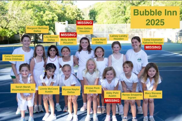 Όπως αναφέρει δημοσίευμα της New York Post, τα κορίτσια που διέμεναν στην καλύβα «Bubble Inn» ξεκίνησαν τη διαμονή τους στις 29 Ιουνίου στο Camp Mystic με τεράστια χαμόγελα. Σε μια φωτογραφία εμφανίζονται και τα 13 κορίτσια μαζί με τις δύο ομαδάρχισσες, ντυμένες με λευκά φορέματα και φούστες και λευκά αθλητικά παπούτσια, να χαμογελούν πλατιά στον φακό.