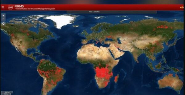 Στη ψηφιακή πλατφόρμα της NASA, μπορεί κανείς να δει, σε ζωντανό χρόνο, όλα τα ενεργά μέτωπα φωτιάς στον κόσμο.
