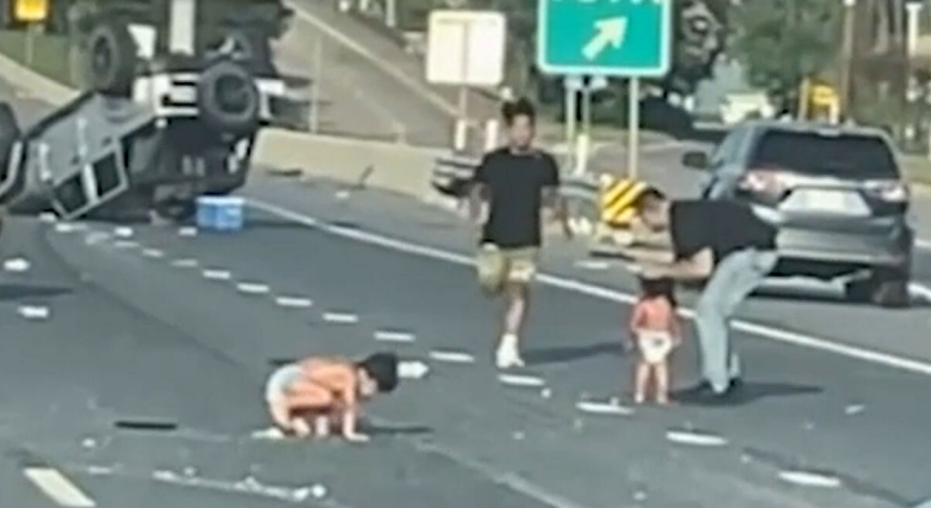 Two toddlers, still in their diapers, walked away fine after being ejected from a Jeep that had flipped on a Texas highway
