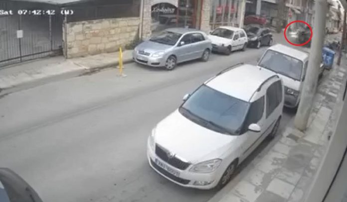 Στο βίντεο φαίνεται το μηχανάκι να διασχίζει την Γρηγορίου Ε’ και να συγκρούεται σε κλάσματα δευτερολέπτων με το διερχόμενο αυτοκίνητο από στην Μυλωνογιάννη.