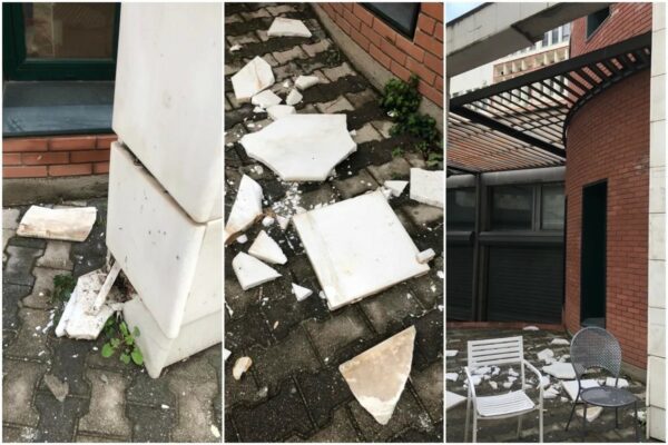 Γκρεμισμένο βρήκαν το υπόστεγο του κυλικείου του τμήματος Κτηνιατρικής στο Αριστοτέλειο Πανεπιστήμιο Θεσσαλονίκης, όπως καταγγέλλουν φοιτητές της σχολής, τονίζοντας ότι είναι θαύμα που δεν γκρεμίστηκε ενώ περνούσαν από κάτω φοιτητές.