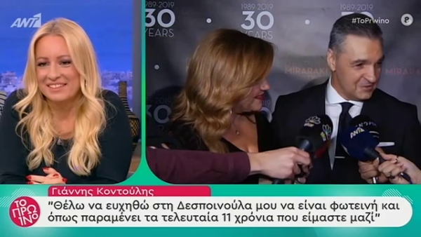 Συντετριμμένη είναι η Δέσποινα Μοιραράκη για τον θάνατο του συζύγου της, Γιάννη Κοντούλη. Σύμφωνα με όσα ανέφερε ο Δήμος Βερύκιος στο «Happy Day», τον τελευταίο καιρό έδινε σκληρή μάχη με τον καρκίνο, πάντα με τη δύναμη και το θάρρος που τον χαρακτήριζε.
