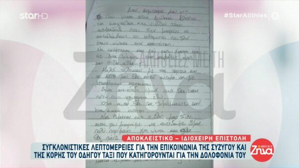Δολοφονία οδηγού ταξί στον Εύοσμο: Η ιδιόχειρη επιστολή της μητέρας στην 18χρονη κόρη της στη φυλακή: Όλα αυτά θα τα θυμόμαστε σαν ένα κακό όνειρο…