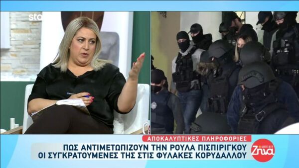 Μία γυναίκα που είναι κρατούμενη κι εκείνη στις φυλακές Κορυδαλλού, περιέγραψε τις πρώτες στιγμές της Ρούλας Πισπιρίγκου στις φυλακές Κορυδαλλού, όπου βρίσκεται προφυλακισμένη για τη δολοφονία της μεγαλύτερης κόρης της, Τζωρτζίνας.