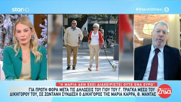 Ο δικηγόρος της Μαρίας Καρρά, απαντά σε όσα την κατηγορεί ο Γιάννης Τράγκας: Οι προσωπικές δαπάνες της κ. Καρρά δεν προέρχονται από την κληρονομιά του Γιώργου Τράγκα