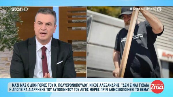 Δικηγόρος Κωνσταντίνου Πολυχρονόπουλου: Δεν είναι τυχαία η απόπειρα διάρρηξης του αυτοκινήτου του λίγες μέρες πριν δημοσιοποιηθεί το θέμα…