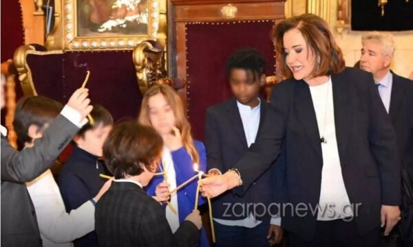Στην Μητρόπολη Χανίων για την 25η Μαρτίου η Ντόρα Μπακογιάννη με τα εγγόνια της- Photos