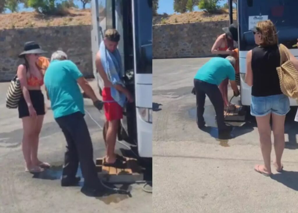 Όπως φαίνεται στο απολαυστικό βίντεο που ανέβασε τουρίστας στα social media, ο οδηγός πλένει και ξεσκονίζει κανονικότητα τους επιβάτες.