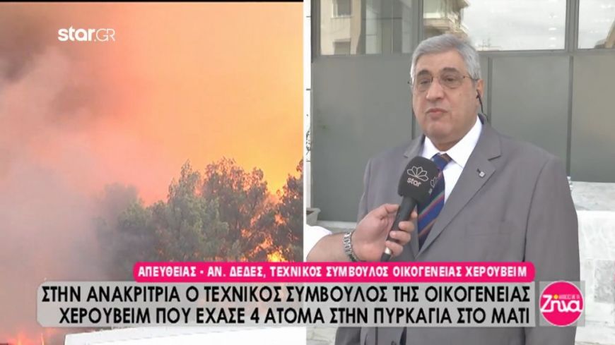 Στην ανακρίτρια βρέθηκε ο Αναστάσιος Δέδες, τεχνικός σύμβουλος της οικογένειας Χερουβείμ που έχασε 4 άτομα στην πυρκαγιά στο Μάτι.