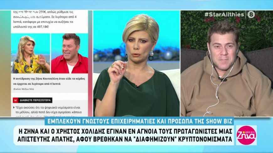 Η Ζήνα Κουτσελίνη και ο Χρήστος Χολίδης έγιναν εν αγνοία τους πρωταγωνιστές μιας απίστευτης απάτης, αφού βρέθηκαν να “διαφημίζουν” κρυπτονομίσματα!