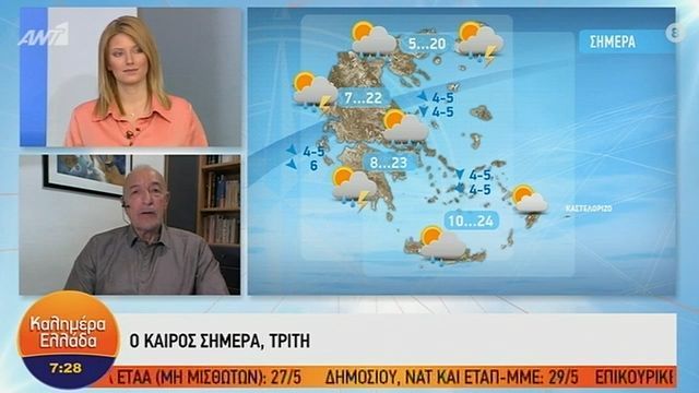Ο Τάσος Αρνιακός παρουσιάζει τον καιρό στην εκπομπή «Καλημέρα Ελλάδα»