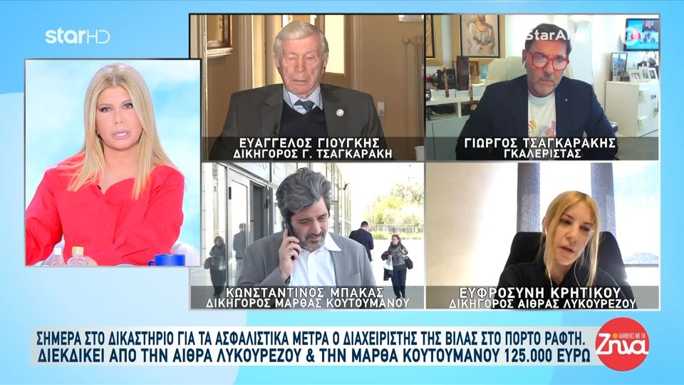 Συζητήθηκαν το πρωί της Δευτέρας τα ασφαλιστικά μέτρα από τον διαχειριστή της βίλας της αείμνηστης Ζωής Λάσκαρη στο Πόρτο Ράφτη, καθώς ο ίδιος διεκδικεί από τις κόρες της ηθοποιού Αίθρα Λυκουρέζου και Μάρθα Κουτουμάνου το ποσό των 125.000 ευρώ ενώ όπως ανέφερε μετά το θάνατο της Ζωής Λάσκαρη οι δυο κόρες της αδιαφόρησαν για τις οφειλές.