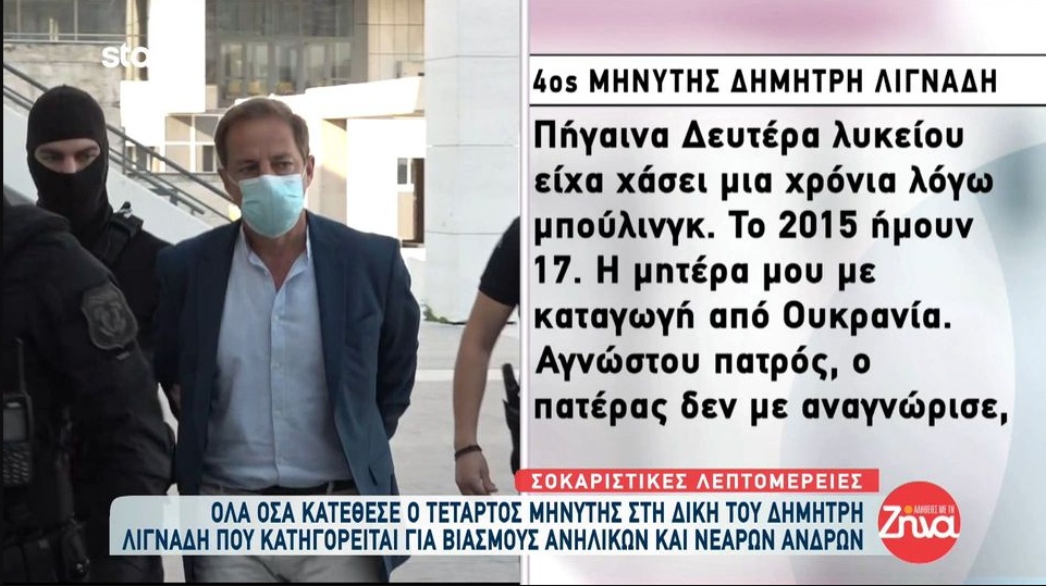 Συνεχίζεται σε κλίμα έντασης και με απίστευτες λεπτομέρειες να έρχονται στο φως η δίκη του Δημήτρη Λιγνάδη που κατηγορείται για τους βιασμούς 4 ανήλικων και νεαρών ανδρών.