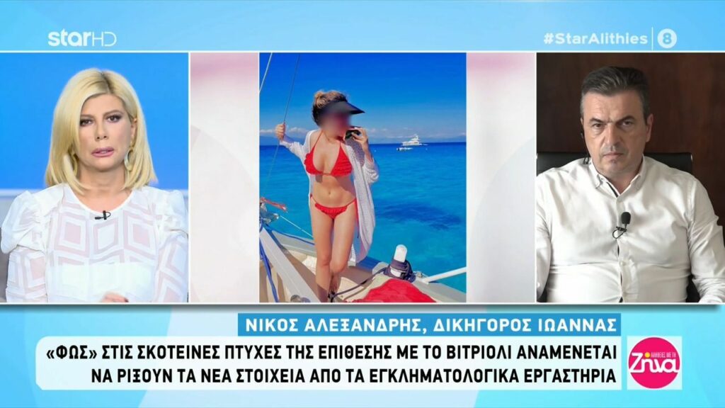 Ο δικηγόρος της άτυχης Ιωάννας- που έπεσε θύμα επίθεσης με βιτριόλι τον προηγούμενο Μάιο- Νίκος Αλεξανδρής, μίλησε στην εκπομπή Αλήθειες με τη Ζήνα και μεταξύ άλλων επισήμανε ότι όταν θα έχουν όλα τα στοιχεία, τότε θα ολοκληρωθεί η δικογραφία.
